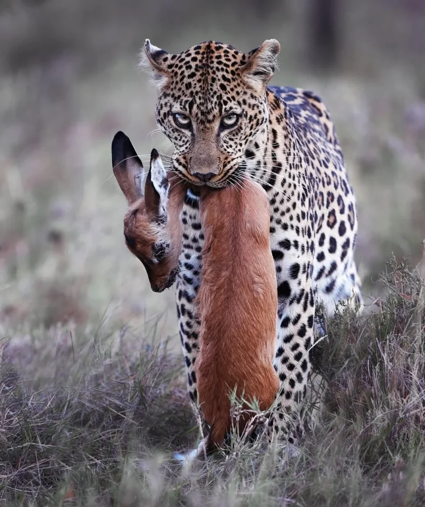 You won’t hear them before they strike. Leopards don’t make noise when they hunt. No roar. No snarl. Just a blur through the grass, a flick of muscle, and then—stillness.
